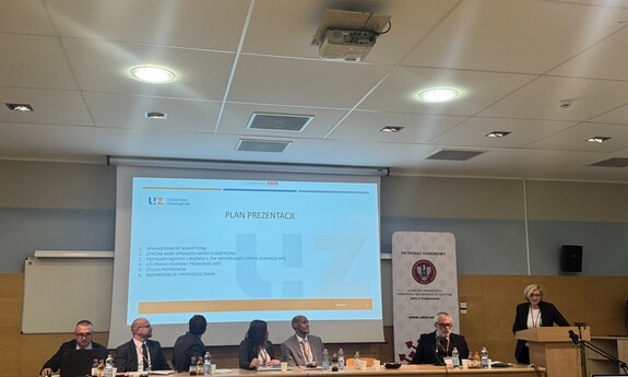 Prof. UZ dr hab. Martyna Łaszewska-Hellriegel zaprezentowała referat pt. „Etyczne aspekty wspierania OZE: czy prawo powinno promować sprawiedliwość klimatyczną?”.