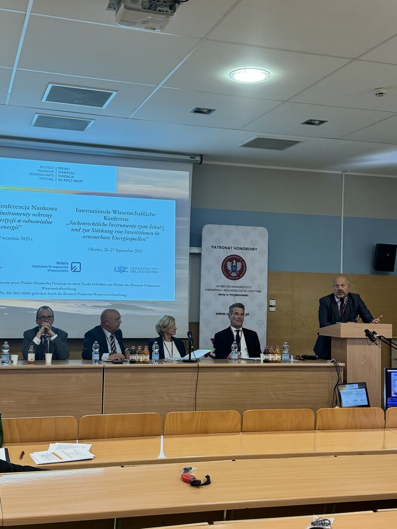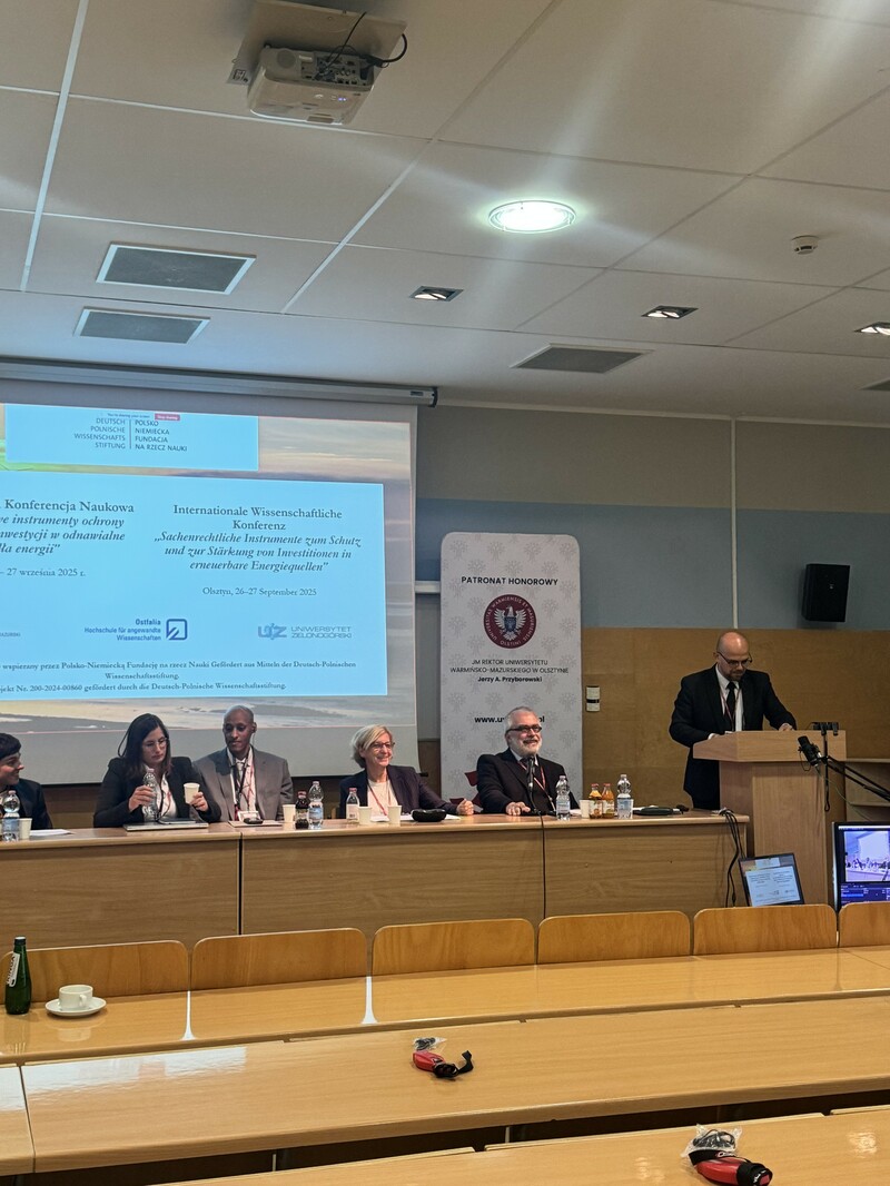 W dniach 26–27 września 2025 roku odbyła się Międzynarodowa Konferencja Naukowa „Prawnorzeczowe instrumenty ochrony i wzmocnienia inwestycji w odnawialne źródła energii (OZE)”, zorganizowana w ramach projektu wspieranego przez Polsko-Niemiecką Fundację na rzecz Nauki. Obrady odbyły się na Wydziale Prawa i Administracji Uniwersytetu Warmińsko-Mazurskiego w Olsztynie.