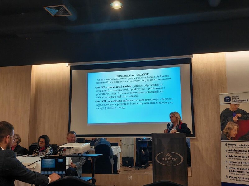 Wystąpienie na temat międzynarodowego systemu licencjonowania przestrzeni kosmicznej oraz ram rejestracji i nadzoru nad krajowymi działaniami w Kosmosie wygłosiła dr hab. Izabela Gawłowicz, prof. UZ, a o uniwersalności podpisu elektronicznego zapewniającego aktywność stronom i pełnomocnikom procesowym niezależnie od czasu i przestrzeni mówiła dr hab. Ewa Szewczyk, prof. UZ. Studentka piątego roku studiów prawniczych Sonia Owczarek przedstawiła wystąpienie na temat odpowiedzialności za degradację środowiska w Kosmosie i ekobójstwa jako wyzwania dla prawa międzynarodowego.