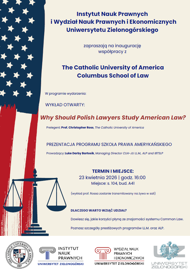 Wykład otwarty: "The Catholic University of America Columbus School of Law"